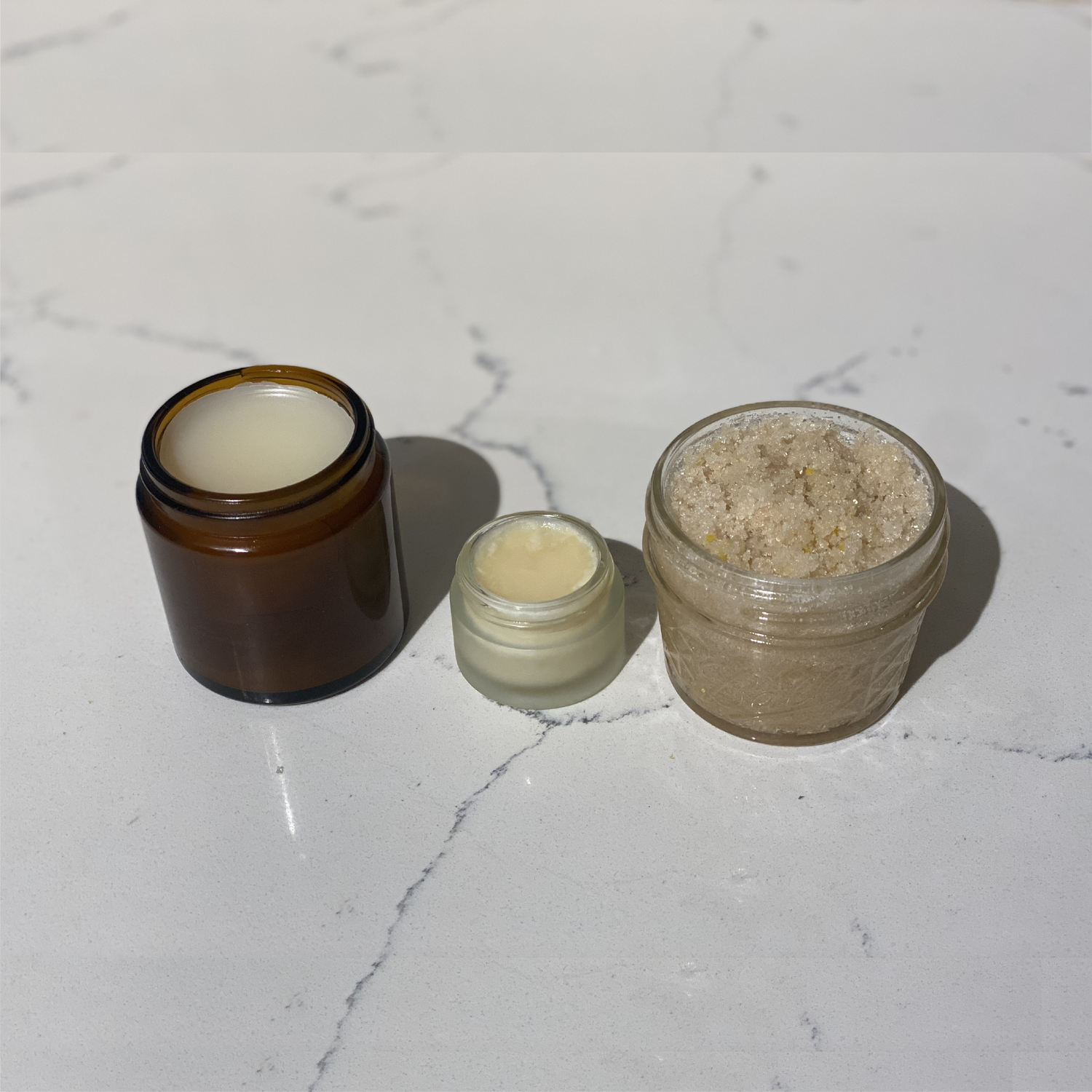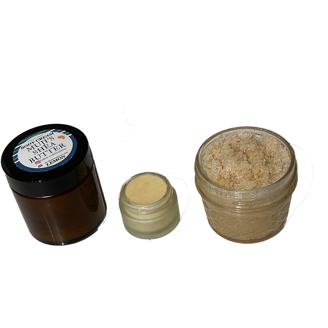 When life gives you lemons, you make lemon lip balm, moisturizer, and body scrub🍋! This collection includes beeswax body cream (4 ounces), lip balm (15 grams), and lemon body scrub (4 ounces).