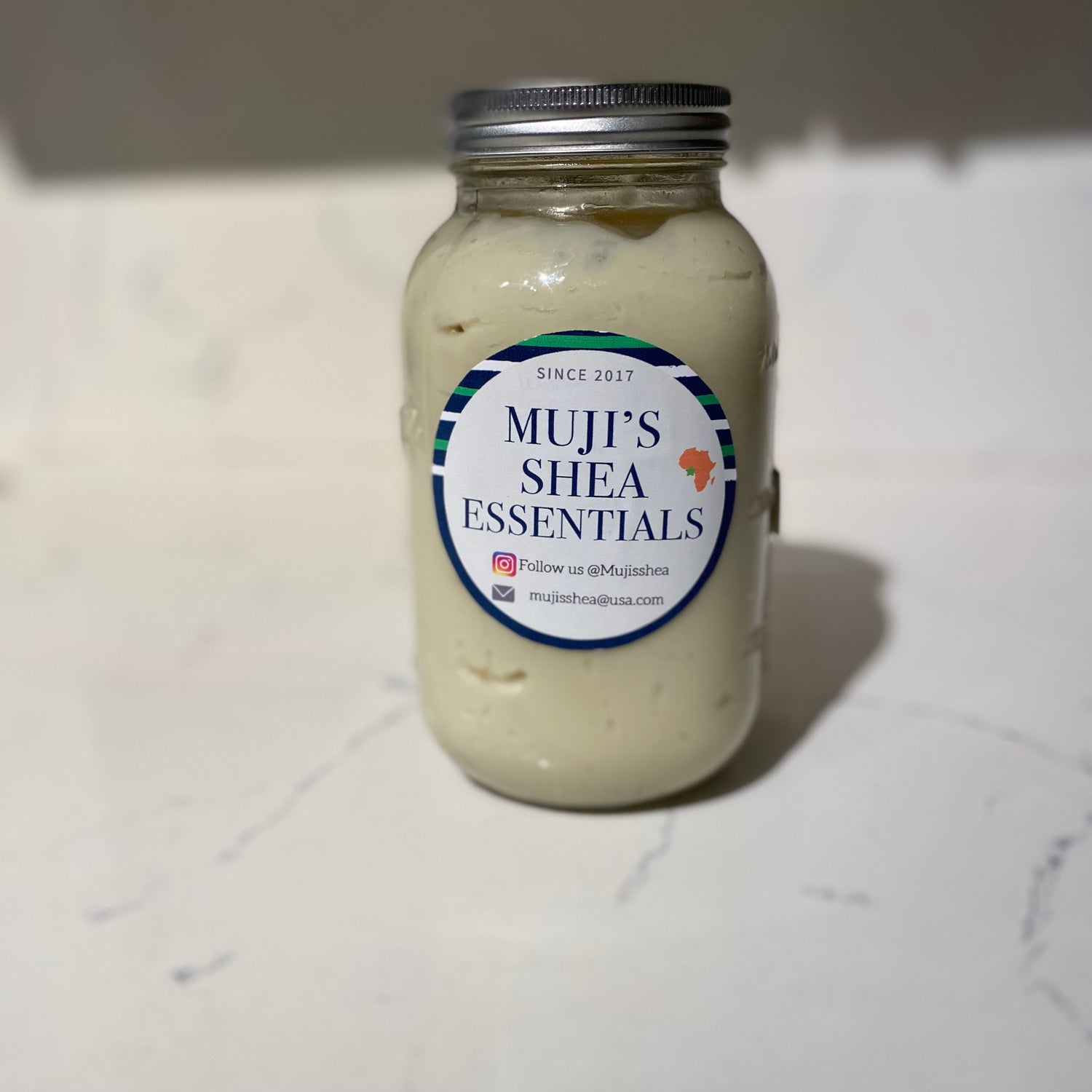 Our 21-ounce jar comes unscented with healthy carrier oils. Our bulk shea butter products use shea butter from other West African Countries like Ghana and Ivory Coast!